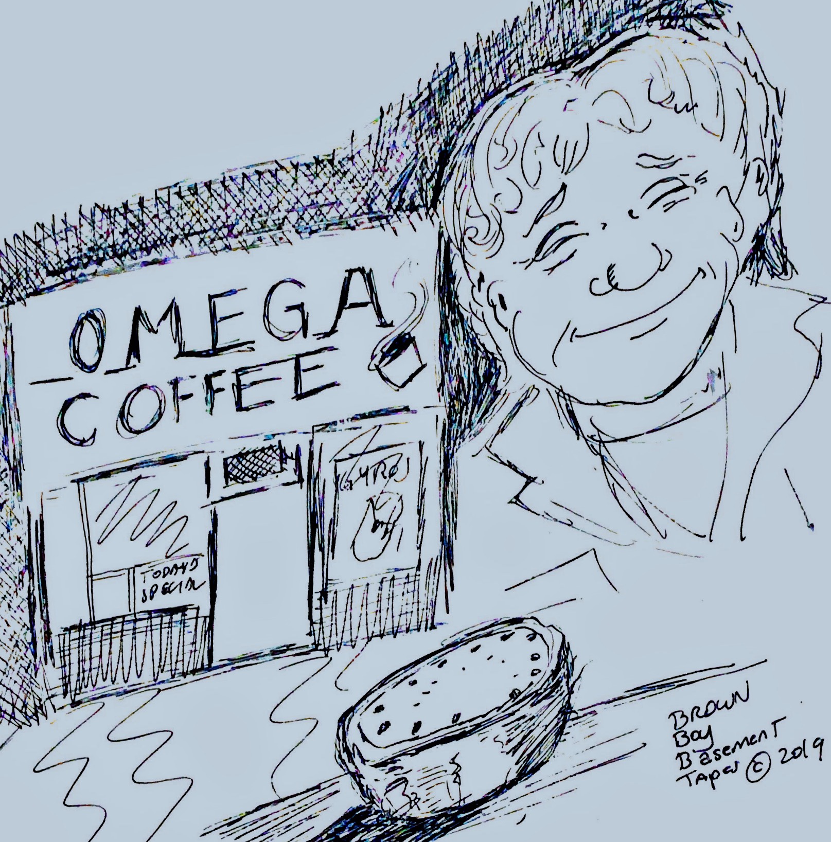 Pell and Bolly met us inside the Omega Coffee Shop where we were greeted , as we sat on the sticky cafe stools, by their beatific smiling faces as each of them embraced their corresponding nocturnal bounty from the Korean fruit stand up the block.